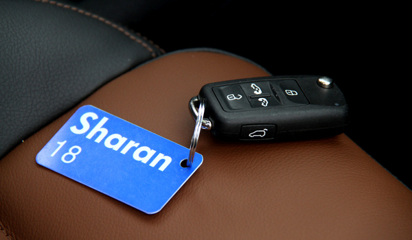 夏朗的鑰匙跟大眾其他車型的樣子差不多,只多了兩個遙控電動側滑門開關的按鈕。