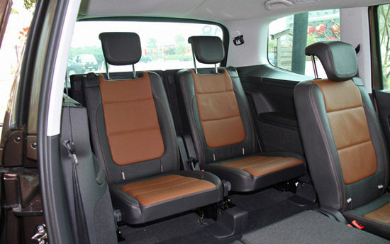 夏朗的第二排座椅不像T5那樣那樣無敵,但三個座椅依然是獨立控制,前后和靠背角度都可以調節(jié),每人一條安全帶自然是標準配置。