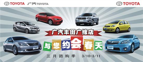 廣汽豐田廣西第一店廣緣4S店于2012年3月10日、11日,在展廳舉辦凱美瑞、漢蘭達(dá)、逸致、雅力士專場團(tuán)購會,屆時凱美瑞、漢蘭達(dá)、逸致、雅力士全新現(xiàn)車限量供應(yīng),先到先得!同時廣緣店還將給您提供最優(yōu)質(zhì)的服務(wù),最優(yōu)越的產(chǎn)品體驗,最優(yōu)惠的價格,為您在春光洋溢的3月出游打下堅實(shí)基礎(chǔ)!