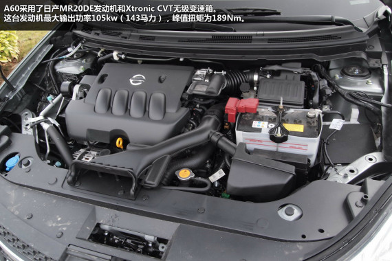 東風(fēng)風(fēng)神A60動力系統(tǒng)來自軒逸,搭載MR20DE發(fā)動機和Xtronic CVT無級變速箱,2.0L發(fā)動機最大功率105kW,最大扭矩189N.m,官方公布百公里綜合油耗僅為7.7L。之后可能會推出1.6升或配備手動變速器的車型。