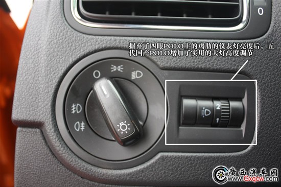 其余方面則和普通版頂配車型沒有區(qū)別,帶行車電腦的儀表盤清晰易用;摒棄了四眼POLO上雞肋的儀表燈亮度調(diào)節(jié)后,五代國產(chǎn)POLO增加了實用的大燈高度調(diào)節(jié);CD機頭增加了藍牙電話功能,甚至可以直接通過按鍵操作iPhone/iPod;和原先頂配車型一樣的自動空調(diào)以及下方內(nèi)側(cè)很好用的儲物空間。