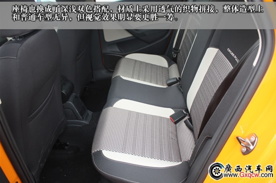 車門內(nèi)側(cè)增加了帶有“CROSS POLO”字樣的傳統(tǒng)迎賓踏板,座椅也換成了深淺雙色搭配,材質(zhì)上采用透氣的織物拼接,刺繡“CROSS POLO”字樣作為傳統(tǒng)被繼承了下來。整體造型上和普通車型無異,但視覺效果明顯要更勝一籌。