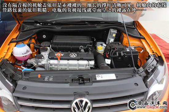 當(dāng)然不足之處沒有絲毫的改變,后輪上還是可憐的鼓剎,不知羊角到這代Cross POLO上有沒有被閹割,不然還有回到碟剎的可能;沒有隔音棉的機艙蓋依舊是赤裸裸的,細長的撐桿清晰可見;機艙內(nèi)的布線管路包裹的依舊粗糙,電瓶的負極接線就堂而皇之的裸露在外……