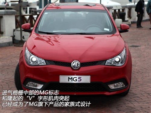 具有原創(chuàng)精神的外形設(shè)計(jì)是MG5的亮點(diǎn)之一,其中前臉部分是最值得一提的地方,由車頭進(jìn)氣格柵MG標(biāo)志開始向發(fā)動(dòng)機(jī)蓋兩側(cè)蔓延的“V”字形肌肉突起除了起到提升整車動(dòng)感的目的之外,它已經(jīng)成為了MG旗下產(chǎn)品的家族式設(shè)計(jì),這點(diǎn)在MG6上就已經(jīng)有所體現(xiàn)。