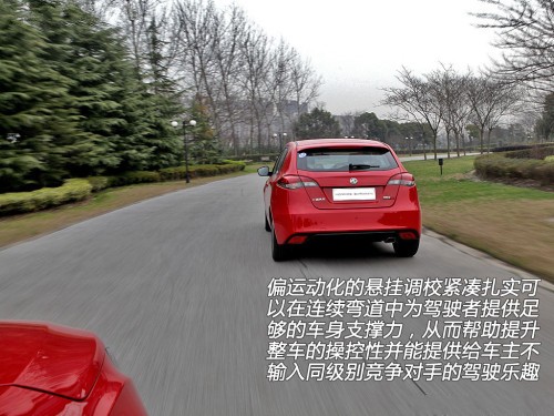 MG5的懸架系統(tǒng)由上汽英國研發(fā)中心和賽車圈知名的Prodrive公司聯(lián)合調(diào)校,在駕駛過程中能體會(huì)到偏向運(yùn)動(dòng)化的懸掛調(diào)校緊湊扎實(shí),可以在連續(xù)彎道中為駕駛者提供足夠的車身支撐力,從而幫助提升整車的操控性,并能提供給車主不輸入同級(jí)別競爭對(duì)手的駕駛樂趣。