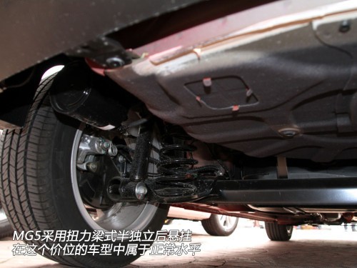 有必要提一下的是,因?yàn)檎w定位比MG6更低一些,所以為了拉低售價(jià),MG5目前沒有使用時(shí)下流行的多連桿懸掛,對(duì)比與同級(jí)別同價(jià)位水平合資品牌競爭對(duì)手來看,屬于正常水平,并沒有讓人覺得意外。