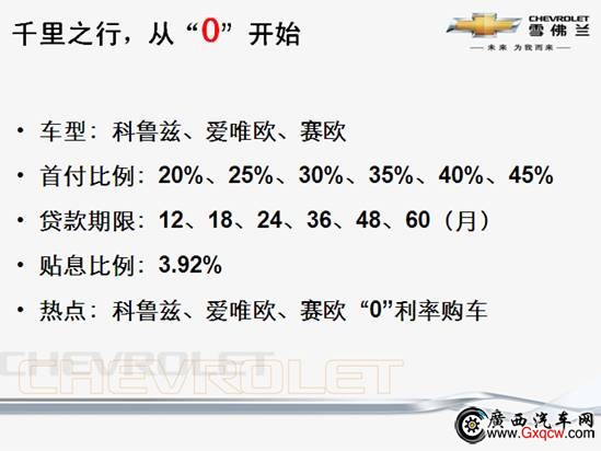 記者從雪佛蘭廣匯廣西弘澤店了解到,2012年伊始,雪佛蘭旗下主力車型科魯茲及愛唯歐兄弟聯(lián)手出擊,為我市年輕薪資一族度身定制了《年輕人購車季》汽車金融計劃,其中,“0門檻”、“0利率”、“長年限”成為該計劃最吸引年輕族群的特色,可以幫他們“0負(fù)擔(dān)”輕松一圓“購車夢”。