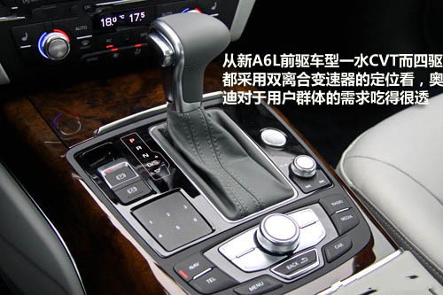 值得一提的是用7速S TRONIC雙離合變速器取代了之前6速AT變速器的50TFSI車型,在3.0TFSI直噴發(fā)動機的推動下,其0-100公里/小時時間僅為5.9秒,完全可以滿足A6L所定位的用戶群體對于動力方面的需求了。新A6L除開四驅(qū)車型外,都采用Multitronic無級變速器,CVT的平順和經(jīng)濟性更符合普通的商務(wù)用戶。