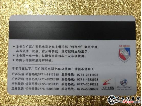 經(jīng)過廣匯別克團(tuán)隊兩年來的不斷實踐和改進(jìn),“特別會”別克俱樂部在2012年全新升級,功能全面提升:在廣西首家使用可讀寫的可視VIP卡,客戶的消費積分信息及可享受的各項福利一目了然。會員卡還新增了儲值即增值的項目,讓廣大“特別會”會員享受更多的優(yōu)惠。金卡會員還新增了專屬維修通道、優(yōu)先服務(wù)等VIP待遇。