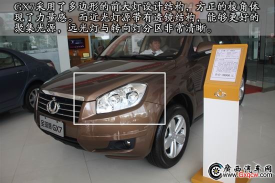 不過說一千道一萬,GX7和RAV4也只是神韻上的相似,細(xì)節(jié)之處可能沒有一處相同,早在2010年的廣州車展時(shí)的GX7可以用不修邊幅來形容,碩大的大燈沒有一絲立體感可言,而如今,在熏黑大燈融入之后,GX7終于展現(xiàn)出了時(shí)尚的姿態(tài)。只不過,目前的GX7還是和帝豪EX7 太過相像,以致于取下車標(biāo)都難以具體分辨。