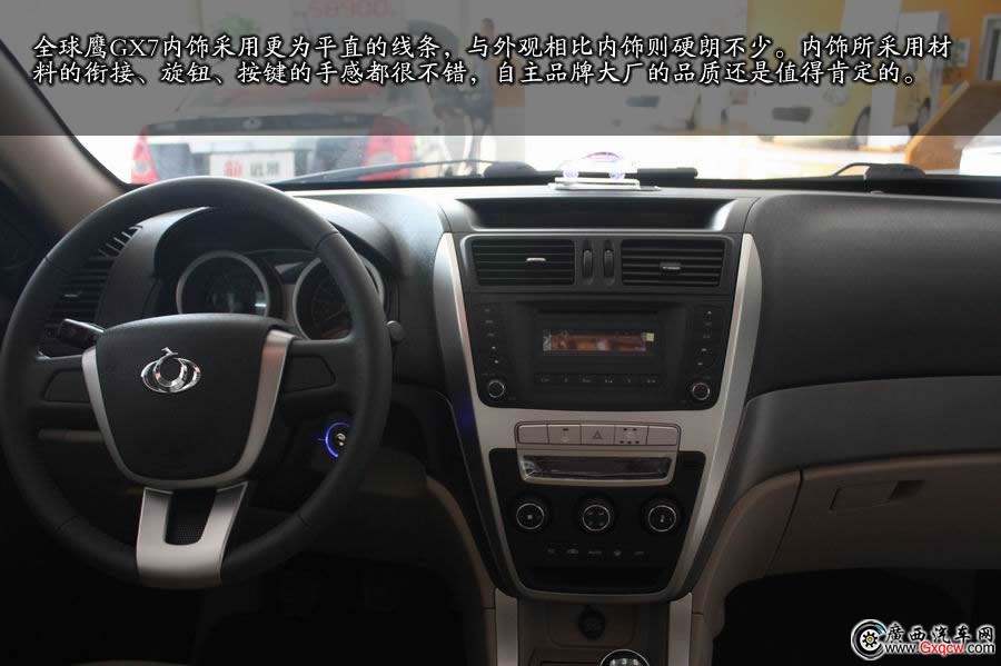 這次實拍的GX7內(nèi)飾部分采用黑色、米色的雙色拼接設(shè)計,層次分明。中控部分較為簡潔,基本功能一目了然,不追求花俏。