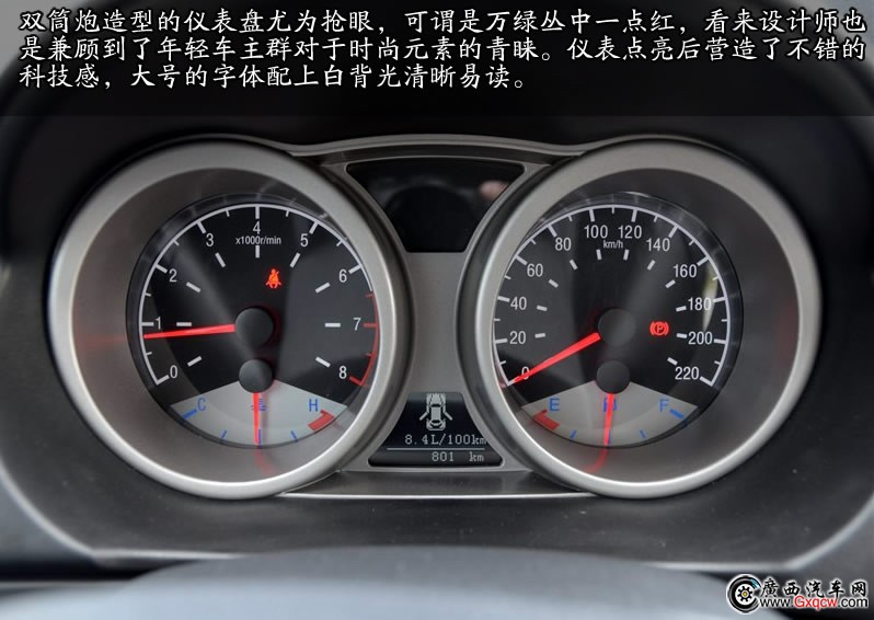在此近乎簡樸的環(huán)境中,雙筒炮造型的儀表盤尤為搶眼,可謂是萬綠叢中一點紅,看來設(shè)計師也是兼顧到了年輕車主群對于時尚元素的青睞。