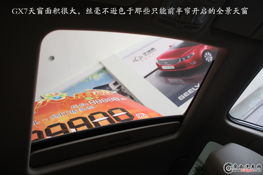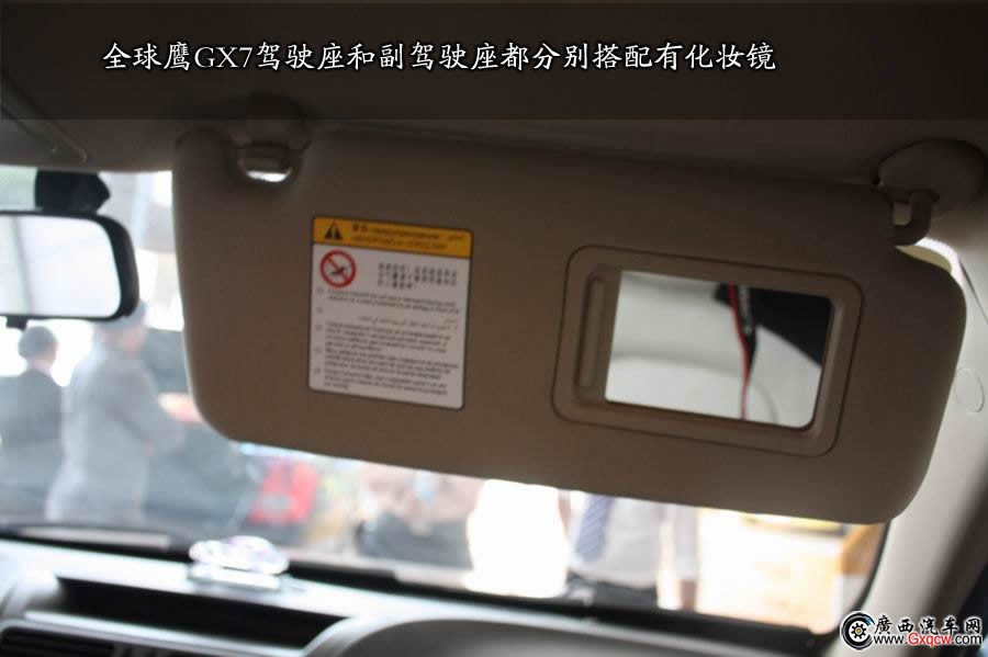 在我們拍攝的不僅有電動天窗,正副駕駛位遮陽板上還配有化妝鏡,不得不重復(fù)的說全球鷹GX7配置確實豐富。