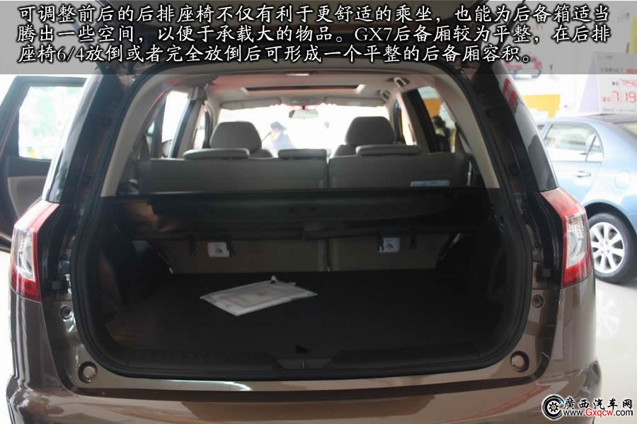 全球鷹GX7擁有開口寬闊的后備箱,當(dāng)然這也得利于其掀背式設(shè)計,按下中控臺的后備箱開啟鍵,然后去輕臺后備箱蓋,其他的就可以交給液壓桿完成,尤其適合女性司機(jī)。