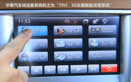 值得一提的是,華泰寶利格搭載了全球首款英特爾智能車載信息娛樂系統(tǒng)(IVI),這套系統(tǒng)我想有必要為大家解讀下。這套系統(tǒng)華泰汽車稱之為:“TIVI 3G實時車載智能決策系統(tǒng)”聽上去有些復雜,其實功能也真不少。系統(tǒng)的屏幕很大,但是分辨率一般,而且在光線較強的環(huán)境下辨識度不高。觸摸操作很方便,就是控制音量的按鍵然我感覺十分不適應,沒有旋鈕控制那樣直接。