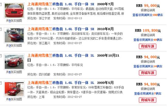 在網(wǎng)上截了個(gè)屏,發(fā)現(xiàn)科魯茲的還真是保值的,三年的車,還能賣9萬多,不錯(cuò)。
