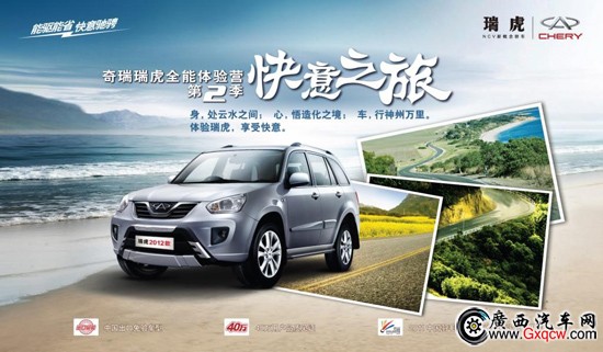 日前,奇瑞汽車對外宣布,“能驅能省 奇瑞瑞虎全能體驗營第2季——快意之旅”全面啟動。自2012年4月初至6月底,奇瑞汽車將在全國范圍內,再度開展瑞虎全能體驗營大型試乘試駕活動。活動期間,凡報名參與全能體驗營的消費者,均有機會試乘試駕瑞虎2012款最新車型,參與全能體驗營各類精彩活動,贏取豐厚神秘大禮,感受瑞虎2012款超凡品質。