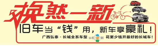 ——長(zhǎng)城全系車型參與廣匯汽車租賃、廣匯二手車相結(jié)合的“以舊換新”“以舊貸新”“以舊租新”活動(dòng)!舊車當(dāng)“錢”用,新車享豪禮!讓您用最少的錢享受全新的有車新生活!歡迎蒞臨4月12-15日第十九屆廣西汽車交易會(huì)(安吉汽車市場(chǎng)內(nèi))車展現(xiàn)場(chǎng)•長(zhǎng)城汽車廣西弘泰C10展位。