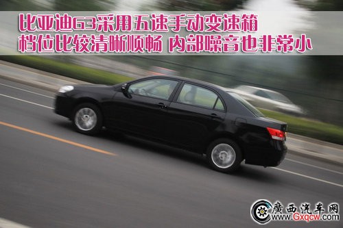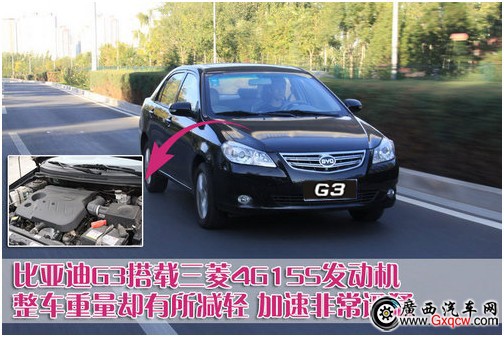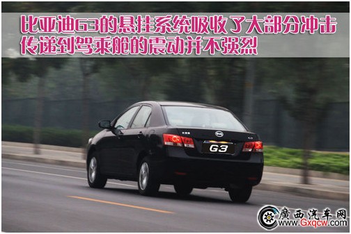 本次試駕的比亞迪G3依然搭載三菱的4G15S發(fā)動機(jī),性能穩(wěn)定,而且經(jīng)濟(jì)性非常優(yōu)秀。比亞迪G3雖然比F3的尺寸更大,但整車重量卻有所減輕,使比亞迪G3的初段加速非常迅猛,不過這款車的油門初段的輸出以及油門踏板的順暢性比較一般。隨著車速的提高,油門的反應(yīng)越來越直接,我們可以很明顯的感受到速度的提升。但對于一款1.5L車型來說,比亞迪G3的車速最好保持在110km/h以下,比較適合二、三級城市道路駕駛。