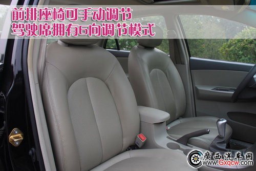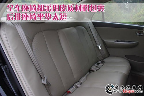 比亞迪G3的前排座椅都采用手動(dòng)調(diào)節(jié)方式,駕駛席座椅采用6向調(diào)節(jié)。但這款車的后排座椅坐墊比較短,看上去后排腿部空間不小,其實(shí)卻比較緊湊。比亞迪G3的全車座椅都采用了皮質(zhì)材料包裹,質(zhì)地比較柔軟,但包裹性卻并不到位。