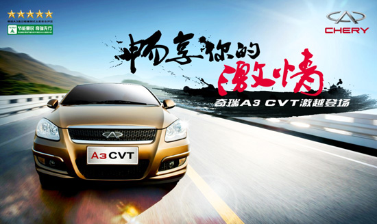 有業(yè)內人士評價:“相比于普通AT變速器,奇瑞A3所采用的CVT變速器可以在相當寬的范圍內實現(xiàn)速比的無級變化以達到最佳工況,從而帶來更低的油耗和廢氣排放量。這一技術的采用,讓消費者既能享有更為舒適的駕乘感受,也能坐享低成本的養(yǎng)車體驗!