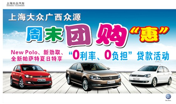 2012火熱夏季,為慶祝本店在剛剛結(jié)束的2012年第十九屆廣西汽車交易會(huì)(安吉車展)上取得的驕人戰(zhàn)績(jī),同時(shí)更是為了回饋廣大上海大眾車主對(duì)我店一直以來(lái)的關(guān)心、支持與厚愛,上海大眾廣西眾源4S店集合現(xiàn)有資源于本周末(4月21日-22日)隆重推出【周末團(tuán)購(gòu)“惠”】活動(dòng)。