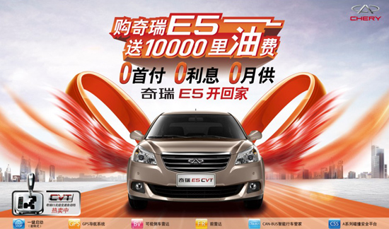 汽車個貸成時尚消費 奇瑞E5 零負擔(dān)個貸備受追捧