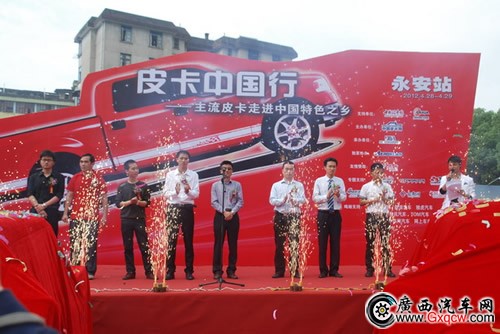 中國皮卡網(wǎng)運營總監(jiān)韓君善先生與各位經(jīng)銷商代表共同宣布皮卡中國行永安站活動開幕