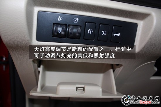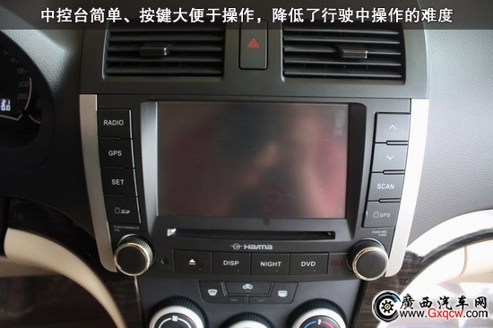 中控臺(tái)的設(shè)計(jì)非常簡(jiǎn)單,布局清晰,給人一覽無余的感覺。頂部是空調(diào)出風(fēng)口和音響面板,控制的按鍵較大,便于行駛過程操作,比較實(shí)用。音響面板下面是空調(diào)面板,也是簡(jiǎn)單清晰,但如果能換成自動(dòng)調(diào)節(jié)空調(diào)就更難得了。空調(diào)面板下方的中控臺(tái)區(qū)域設(shè)置了兩個(gè)可開啟式暗格,上面的暗格開啟后可發(fā)現(xiàn)內(nèi)設(shè)了USB接口、AUX接口、車載電源等設(shè)備,使用方便,應(yīng)該比較吸引年輕車主。