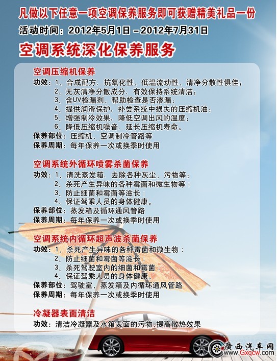 為此,鑫廣達(dá)一汽馬自達(dá)特別推出了夏季保養(yǎng)項(xiàng)目——空調(diào)系統(tǒng)深化保養(yǎng)服務(wù)。