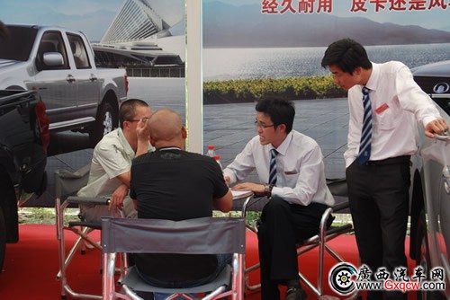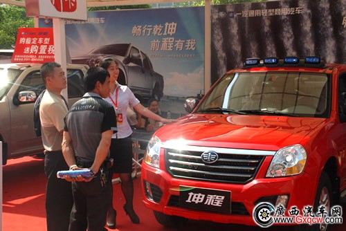 一汽通用的銷售人員像客戶介紹坤程皮卡