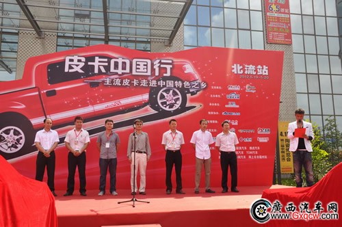 由中國(guó)皮卡主辦、AEROKLAS(雅羅可斯)獨(dú)家協(xié)辦的首屆“皮卡中國(guó)行——主流皮卡走進(jìn)中國(guó)特色之鄉(xiāng)”大型皮卡文化體驗(yàn)活動(dòng)于2012年5月19—20日在廣西北流市國(guó)際陶瓷城廣場(chǎng)盛大開(kāi)場(chǎng)。國(guó)內(nèi)六大主流皮卡品牌:長(zhǎng)城、江鈴、福田、海格、一汽通用、江淮隆重登場(chǎng),經(jīng)典皮卡品牌走進(jìn)北流百姓人家;新銳實(shí)力車型引爆觀眾激情。中國(guó)皮卡網(wǎng)總監(jiān)韓君善先生與來(lái)自各個(gè)品牌的代表一起走上主舞臺(tái),共同拉開(kāi)了皮卡中國(guó)行北流站活動(dòng)的序幕。