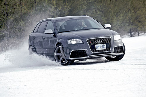 當(dāng)強(qiáng)大的動力和強(qiáng)大的四驅(qū)結(jié)合起來時就會變得風(fēng)雨無阻。我們要感謝寒冷的加拿大、全時四驅(qū)、冬季輪胎和一條空曠的賽道,RS3 在這里的冰凍湖面上可以進(jìn)行長得可怕的大漂移。quattro 系統(tǒng)在冰面上表現(xiàn)良好,盡管其只能對前后輪動力輸出進(jìn)行調(diào)配而非左右調(diào)配,但是這也保證了它足夠的駕駛樂趣。所以漂移成了這次試駕的關(guān)鍵詞和RS3最多的行駛狀態(tài)。