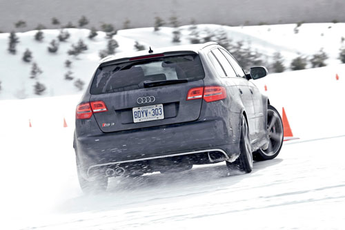 當(dāng)然,欣賞RS3 雪上漂移功夫的不僅僅是我,還有我們的攝影師馬克,在他的執(zhí)意要求下,我不斷地踩下敏銳的油門,讓RS3 陷入怒吼狀態(tài),最終四個輪子瘋狂旋轉(zhuǎn),然后劃出完美的漂移弧線。