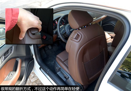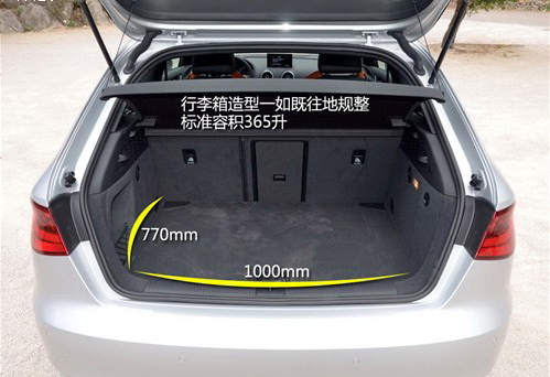 空間方面,A3較上一代車型而言最主要的變化就是增加了頭部空間,身高1.75米的模特在前排和后排都有很大的余量。而對于加長了23mm的軸距來說,后排的腿部空間變化不是很明顯,只有少量空間,如果1.8米以上的乘客坐在后排的話,腿部就會略顯局促了。