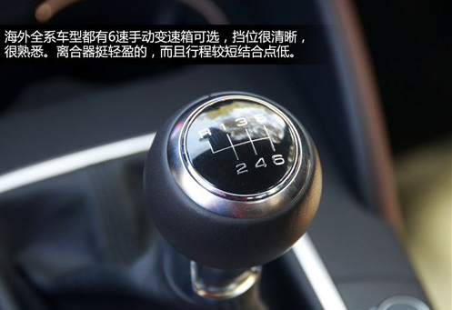 手動變速箱的換擋感覺很熟悉,在城市中基本上用不到6擋,這第6個擋位只是為了一個目的:省油。掛上6擋你會發(fā)現(xiàn)即使上了高速公路轉(zhuǎn)速也就在2000轉(zhuǎn)左右。離合器的結(jié)合點不高,行程也比較短,對手動擋不是很精通的朋友也可以嘗試著做出快速換擋動作,擋位行程較短,有吸入感,經(jīng)典的德系變速箱的感覺。但是有一點很奇怪,就是每次停車后釋放手剎起步總是容易熄火,要稍稍多踩一點油門配合好離合器才能正常起步,不知道是不是autohold功能的作用,有一些惱人。