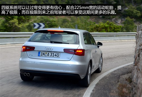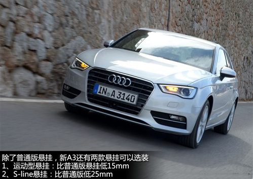 作為緊湊型鋼炮,優(yōu)秀的懸掛是必需品,新A3保持了主流的前麥弗遜、后多連桿的搭配,另外可以選裝“運動型”懸掛,它會比標(biāo)準(zhǔn)版的懸掛降低了15mm,如果還覺得欠點兒火候,還可以選裝S line懸掛套件,車身將降低25mm。本次試駕的車型配備了自適應(yīng)避震器,可以根據(jù)不同的路況自動調(diào)節(jié)避震的高度和硬度,調(diào)整范圍15mm。實際駕駛的時候可以感覺到懸掛的前端調(diào)校是比較舒適的,小溝坎和輕微的顛簸過濾的還是不錯的。不過要是快速過彎的話,后段又能給予足夠的支撐力,典型的歐洲轎車的調(diào)教方式,開著不太累該耍也能耍起來。