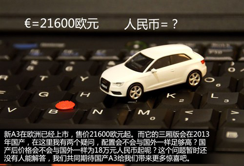 至于價格嘛,新A3在歐洲的起步售價為2.16萬歐元,折合人民幣18萬元起,但是這個價格會在國產(chǎn)后保持嗎?現(xiàn)在還沒有人能告訴我們這個問題,不過可以肯定的是,如果想要銷售數(shù)量,再好的配置也抵不上一個好價格,國產(chǎn)車不會像海外那樣選裝銷售,但是如果這些配置都加上的話價格勢必就沒有競爭優(yōu)勢了,畢竟現(xiàn)在純進(jìn)口的寶馬1系只賣24.2萬元起,如果A3賣20多萬的話競爭優(yōu)勢就不大了,畢竟是個緊湊型車。但如果真的賣到18萬元,我想本文章中提到的很多配置國人都看不到了。當(dāng)然這這只是我的個人猜測,事實怎樣,讓我們共同期待奧迪A3的到來吧。