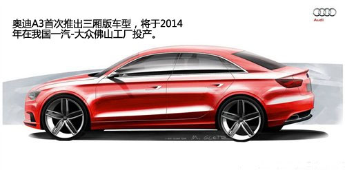 奧迪A3的第三代車型以進(jìn)口方式在國內(nèi)正式銷售,讓國人熟悉了A3這款車,但因售價和定位問題在國內(nèi)銷量并不理想。不過現(xiàn)在全新的A3來了,而且對于中國市場來說,是有備而來的。新奧迪A3預(yù)計在2014年國產(chǎn),投產(chǎn)于一汽-大眾佛山工廠,車型是非常迎合國人口味的三廂版。