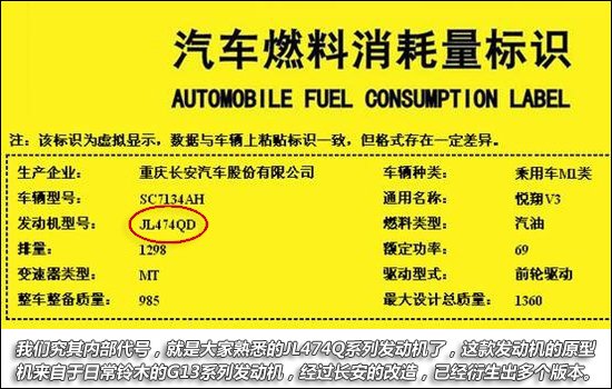 長(zhǎng)安將這款全新的1.3L發(fā)動(dòng)機(jī)命名為C13,之前已經(jīng)搭載于旗下的微面---金牛星。但是我們究其內(nèi)部代號(hào),就是大家熟悉的JL474Q系列發(fā)動(dòng)機(jī)了,這款發(fā)動(dòng)機(jī)的原型機(jī)來(lái)自于日常鈴木的G13系列發(fā)動(dòng)機(jī),經(jīng)過(guò)長(zhǎng)安的改造,已經(jīng)衍生出多個(gè)版本,如老款羚羊上的JL474Q2、雨燕上的JL474Q8等,但是我查了下悅翔V3的發(fā)動(dòng)機(jī)編號(hào),為JL474QD,想必是再次經(jīng)過(guò)了改良。