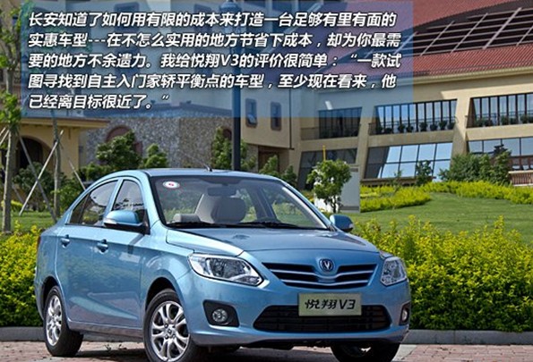 后記:本想找出一些亮點,對悅翔V3做出個總結(jié),但是我發(fā)現(xiàn)她各個方面都表現(xiàn)的還不錯,但又不夠突出。如果非要我說一些,那么從第一眼就讓人看著舒服的外觀以及綜合實力不錯的動力及底盤總成算是給了我一些意外之喜。我想,在大家都做好成熟的可靠性和極高的性價比之后,這些因素將會成為未來自主品牌之間競爭的重點;而對于消費者,同等價格,誰不希望自己的車看起來更舒服一點,開起來更輕松一點呢,長安知道了如何用有限的成本來打造一臺足夠有里有面的實惠車型---在不怎么實用的地方節(jié)省下成本,卻為你最需要的地方不余遺力。我給悅翔V3的評價很簡單:“一款試圖尋找到自主入門家轎平衡點的車型,至少現(xiàn)在看來,他已經(jīng)離目標(biāo)很近了!