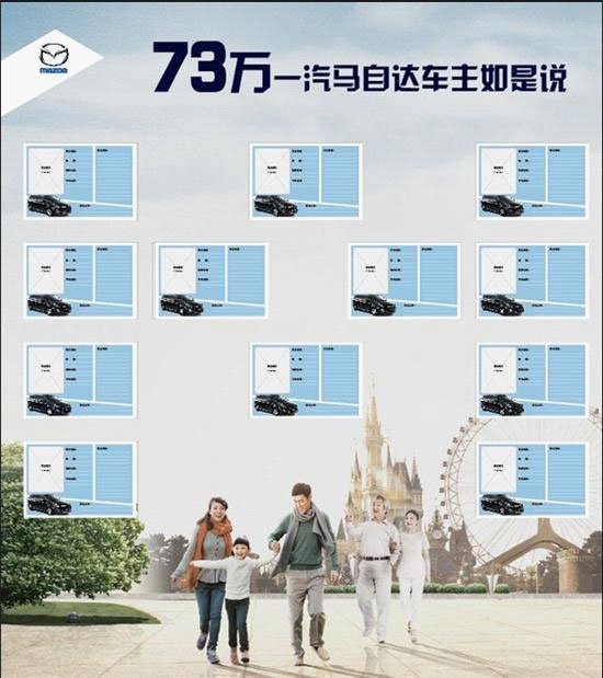 2、我們將把您的車主故事卡粘貼在“73萬一汽馬自達車主如是說”展板中,與更多的車主分享您的故事。
