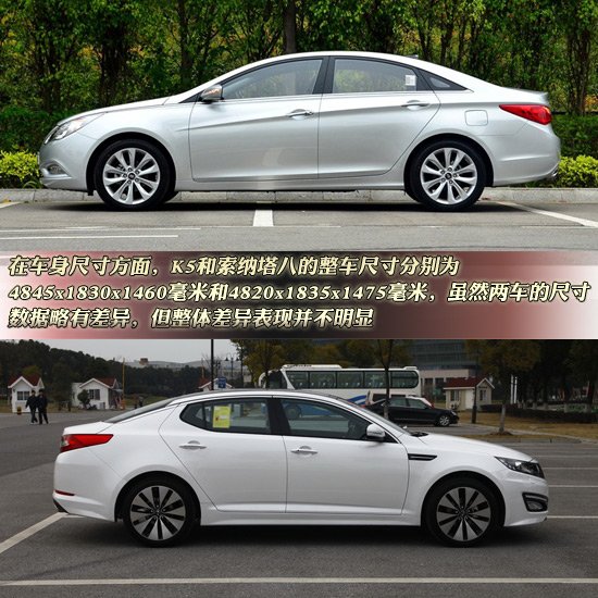 在車身尺寸方面,K5和索納塔八的整車尺寸分別為4845x1830x1460毫米和4820x1835x1475毫米,雖然兩車的尺寸數(shù)據(jù)略有差異,但整體差異表現(xiàn)并不明顯,沒有對車內(nèi)乘用空間有所影響。兩車的軸距同為2795毫米,因此對于后排乘客的腿部空間表現(xiàn)將不會有太大差異,在同級別對手中的表現(xiàn)也處于中上游水平。