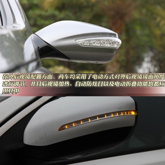 在外后視鏡配置方面,兩車均采用了電動(dòng)方式對(duì)外后視鏡鏡面角度進(jìn)行調(diào)節(jié),并且后視鏡加熱、自動(dòng)防炫目以及電動(dòng)折疊功能也都應(yīng)用其中。這些配置的應(yīng)用為兩款車型在雨雪天氣行車、夜間行車以及駐車狀態(tài)下的行車安全提供了充分的安全保證。
