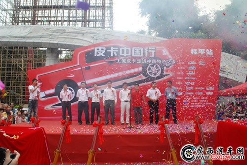2012年6月2—3日,由中國(guó)皮卡主辦、AEROKLAS(雅羅可斯)獨(dú)家協(xié)辦的首屆“皮卡中國(guó)行——主流皮卡走進(jìn)中國(guó)特色之鄉(xiāng)”大型皮卡文化體驗(yàn)活動(dòng)登陸中國(guó)著名的“休閑服飾之鄉(xiāng)”廣西省桂平市。來自福田、長(zhǎng)城、江鈴、海格、一汽通用、江淮、福迪等品牌的主力車型在桂平市人民廣場(chǎng)集體亮相,國(guó)內(nèi)七大皮卡一流品牌齊集桂平,十余款實(shí)力車型登陸潯洲。中國(guó)皮卡網(wǎng)總監(jiān)韓君善先生與來自各個(gè)品牌的代表們共同拉開了皮卡中國(guó)行桂平站活動(dòng)的序幕。