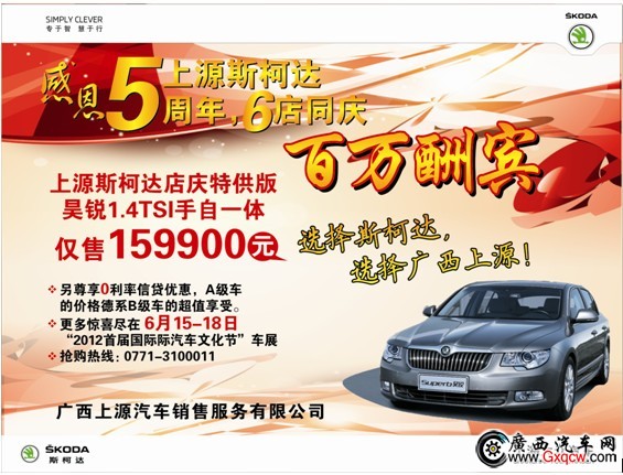 6月,上源斯柯達(dá)“感恩5周年,6店同慶,百萬酬賓”,好禮送不停!