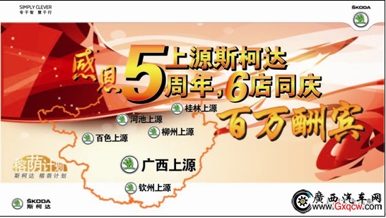 廣西上源斯柯達(dá)感恩5周年,6店同慶,百萬酬賓!6月廣西上源斯柯達(dá)也將加入上海大眾汽車“榕蔭計劃”,助力消費(fèi)者早日輕松圓夢有車生活。