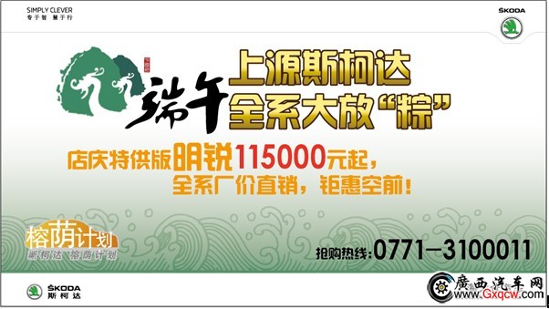 上源斯柯達(dá)感恩五周年,六店同慶,百萬酬賓,端午節(jié)全系大放“粽”,店慶特供版明銳115000元起,全系廠價(jià)直銷,鉅惠空前!