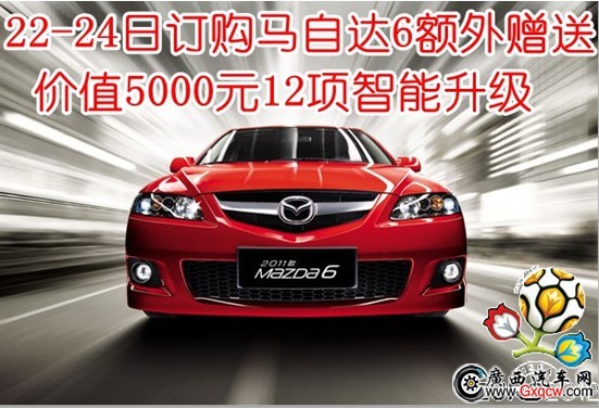3、活動期間訂、購馬自達(dá)6可額外贈送價值5000元的12項(xiàng)智能升級。數(shù)量有限先到先得;