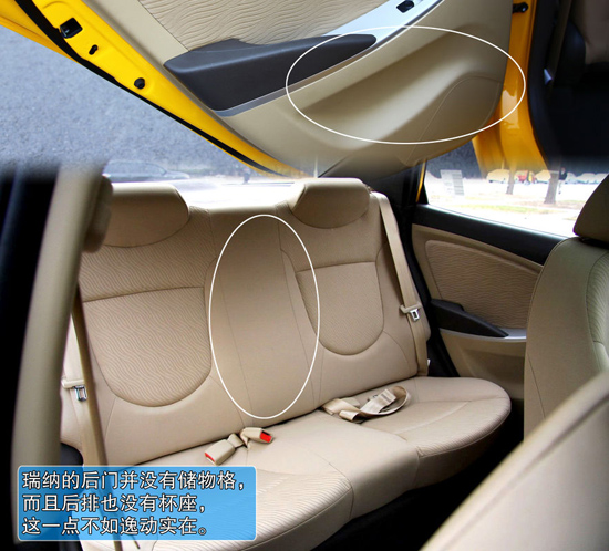 合資車在人性化方面一直做的不錯,哪怕是面對逸動這樣的全新緊湊車也是如此。變速桿前后都有儲物格,無論是對付手機(jī)、錢包或香煙都沒有問題。瑞納的后門并沒有儲物格,而且后排也沒有杯座,這一點(diǎn)不如逸動實在。但瑞納手剎后面有個儲物格,還是可以放置水瓶等物品,多少彌補(bǔ)了一下后排儲物空間上的不足。